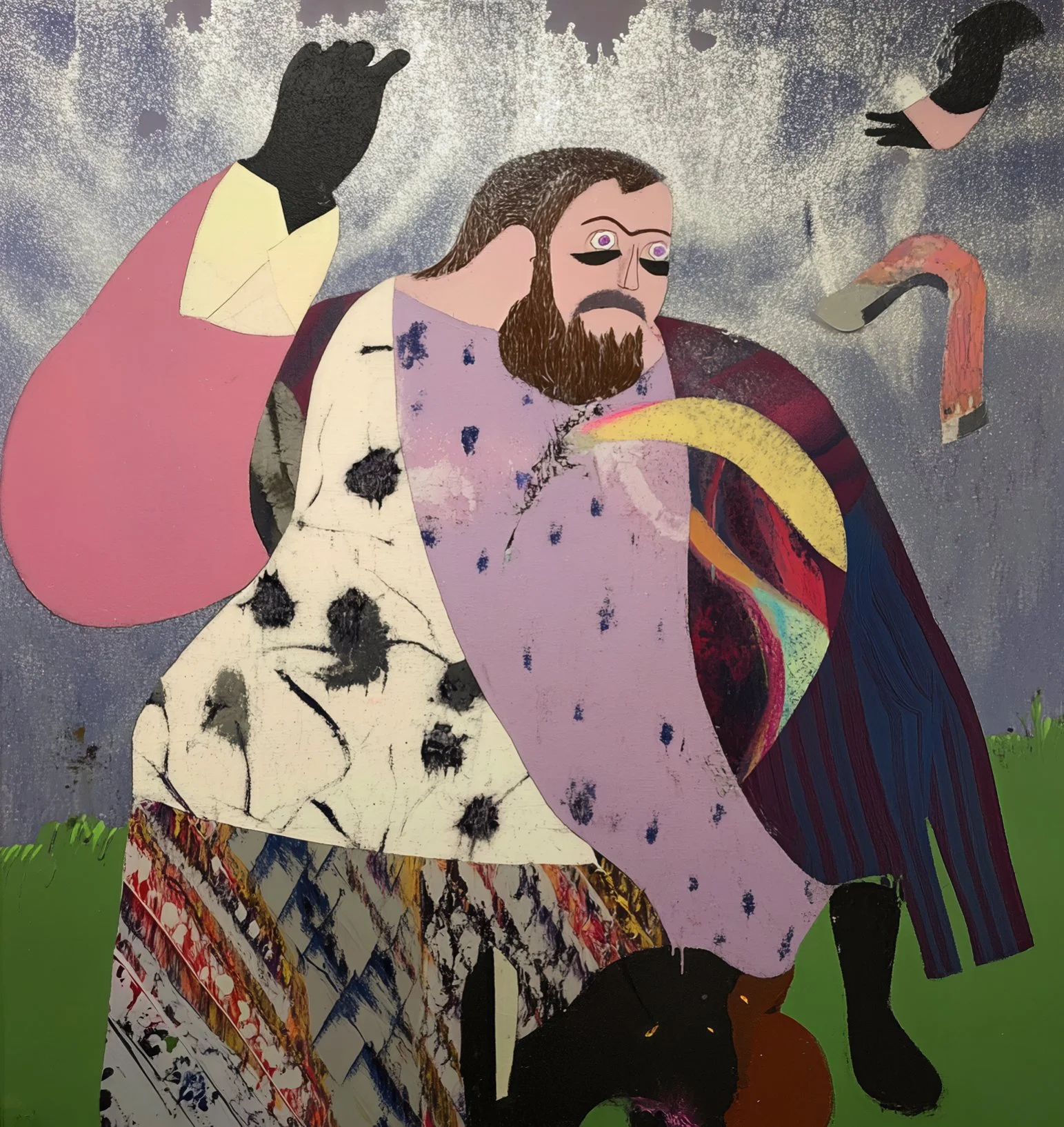 Falcon Fingers, Oil, Acrylic, Flashe, Enamel, Canvas, and Paper on Panel, 2025